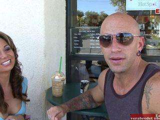 Gina als zierliche Schönheit die große Schwänze lutscht